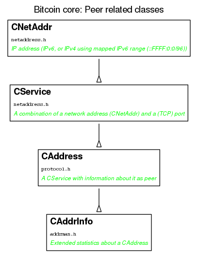 Classes shown: CNetAddr, CService, CAddress, CAddrInfo