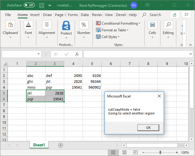 msgBox "cutCopyMode = " & cutCopyModeToString & chr(10) & "Going to select another region"