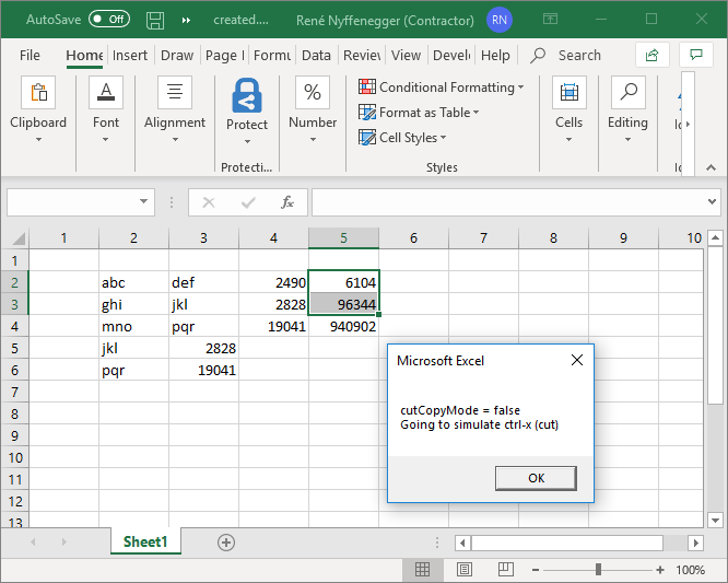 msgBox "cutCopyMode = " & cutCopyModeToString & chr(10) & "Going to simulate ctrl-x (cut)"