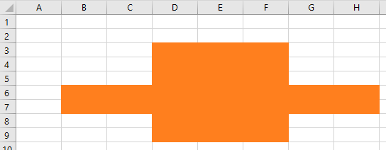 with which «set operations» can be performed with ranges. option explicit public sub main() dim range_1 as range dim range_2 as range dim range_result as range set range_1 = activeSheet.range("d3:f9") set range_2 = activeSheet.range("b6:h7") set range_result = union (range_1, range_2) range_result.interior.color = RGB(255, 127 , 30) activeWorkbook.saved = true end sub