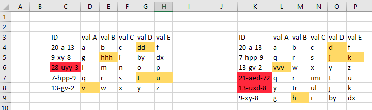 VBA code to highlight the differences.