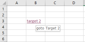 ws_3.hyperlinks.add anchor := target_cell_3, address := "", subAddress := target_cell_1.parent.name & "!" & target_cell_1.address, screenTip := "goto Target 1", textToDisplay := "target 1"