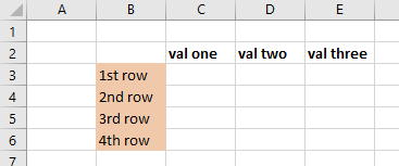 set rngRowNames = writeArrayToSheet(3, 2, array("1st row", "2nd row", "3rd row", "4th row"), false)