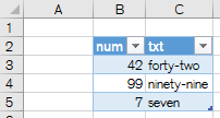 " { ""forty-two"", ""ninety-nine"", ""seven"" } " & _