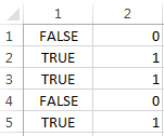 In the following example, the VBA code inserts a few boolean values into the first column and then inserts a formula with two minus signs to represent the boolean value as 0 or 1: