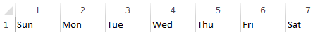 range(cells(1,1), cells(1,7)).formulaArray = "=days"