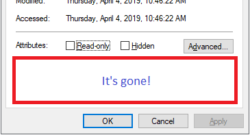After unblocking the file, the unblock checkbox is gone from the file's property dialog: