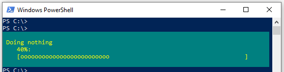 updates a progress bar which might be used to indicate how far a certain task already is. for ($percent = 0; $percent -le 100; $percent += 5) { start-sleep -milliSeconds 500 write-progress -activity 'Doing nothing' -status "$percent%:" -percentComplete $percent }