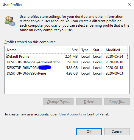 sysdm.cpl: Advanced -> User Profiles