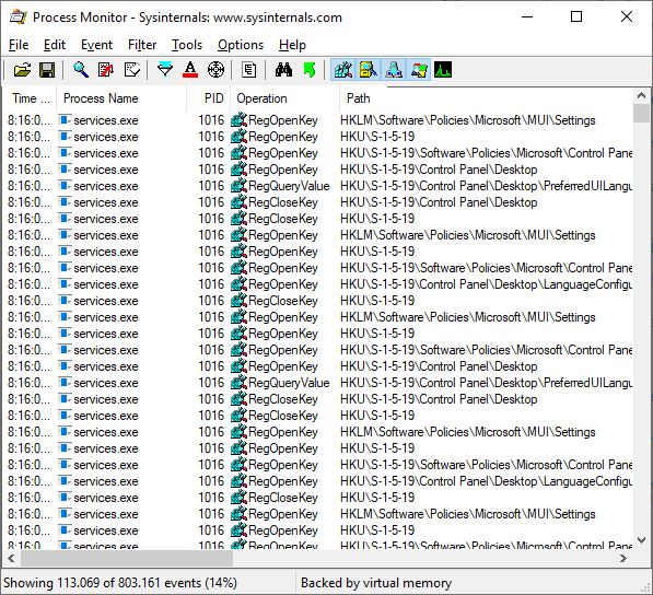 HKEY_CURRENT_USER\Software\Sysinternals\Process Monitor