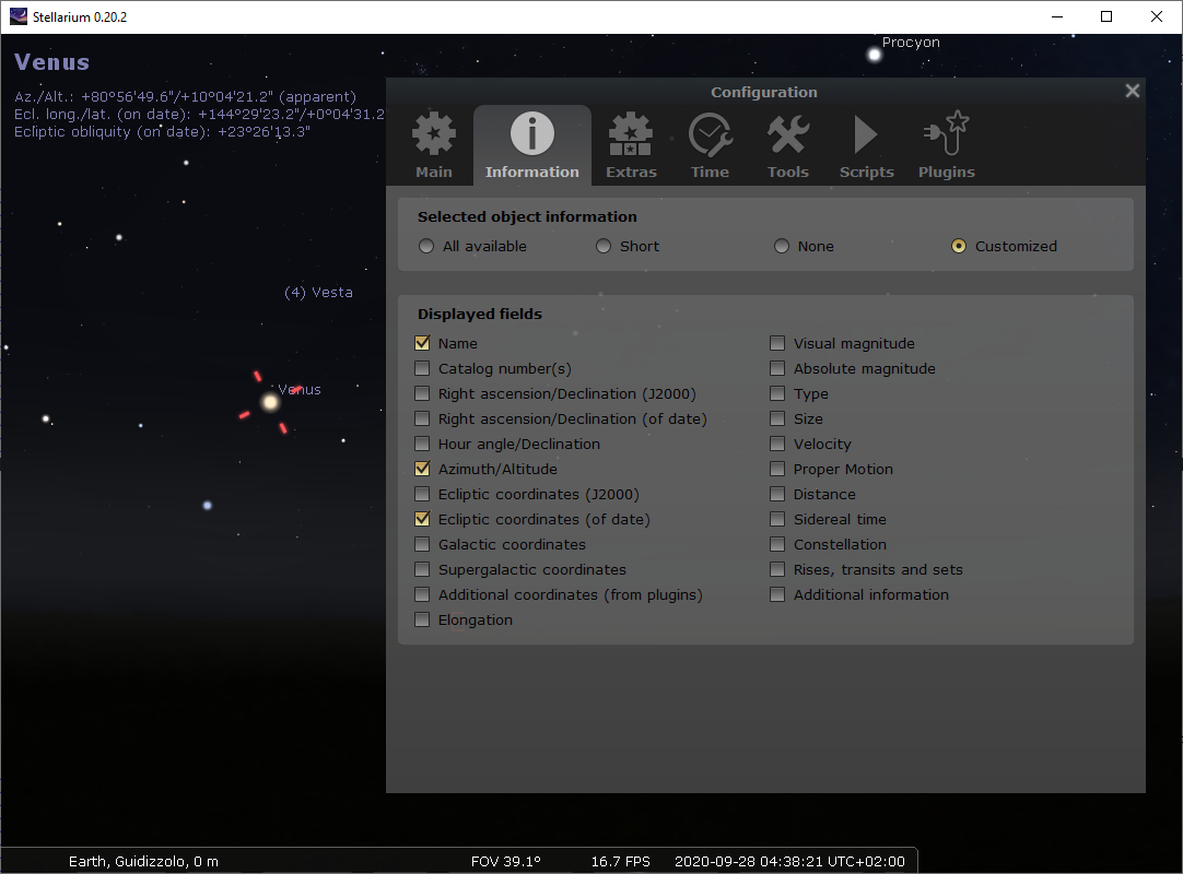 shortcut key) -> Information allows to choose which data is shown when an object is selected. Name | |