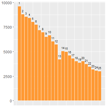 streetNumberCount$Hausnummer <- as.numeric(streetNumberCount$Hausnummer);