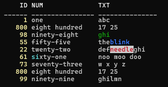 {"type":"contains" ,"test": "needle" ,"color":"BG_WHITE,RED" },