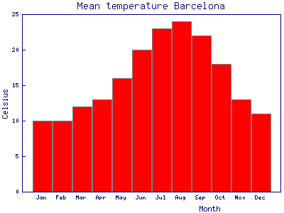 [ 5, 6, 8, 10, 14, 18, 21, 21, 18, 14, 9, 5 ], # Mean Min Temperature Barcelona