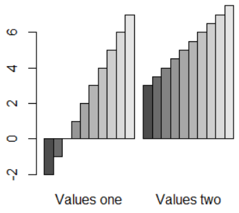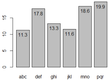 , the elements in a vector can be given a name which will then be displayed below the bars in the plot: