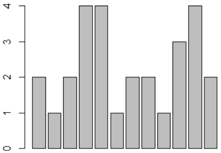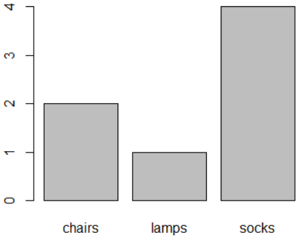 and the bar-plotted which reveals how often a specific element (string) occurs in the vector: