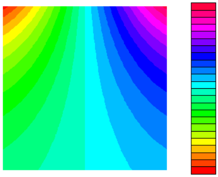 filled.contour(grid, axes = FALSE, color.palette=rainbow, asp=1);