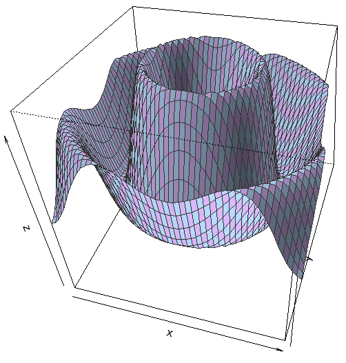 sqrt( (x+cos(y)/10) ^2 + (y - sin(x)/5) ^2) +