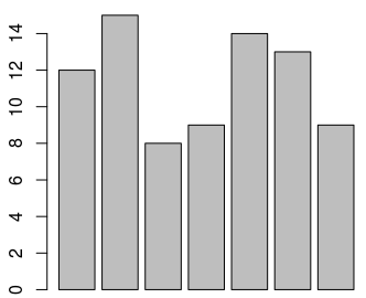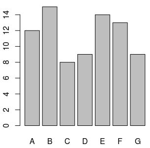 x11() heights <- c( 12, 15, 8, 9, 14, 13, 9 ) barplot( heights, names = c( 'A', 'B', 'C', 'D', 'E', 'F', 'G' ) ) # wait for mouse click or enter pressed z <- locator(1)