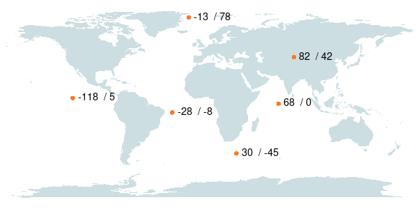 lat = c( 5, - 8, -45, 0, 42, 78)