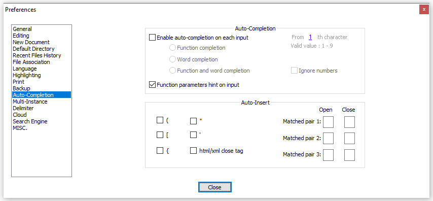 notepad++ Settings -> Preferences -> Auto Completion