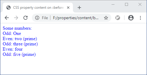 <title>CSS property content on ::before and ::after pseudo elements</title>