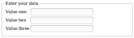 <legend>Enter your data</legend> <!-- legend: place a title onto the border -->