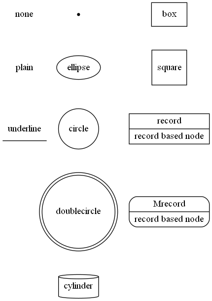 plain | Similar to shape=none but enforces width=0 height=0 margin=0 . This guarantees that the size of a node is determined by its label . Not available in version 2.38 | |
