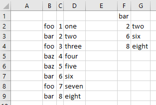 range(cells(9,2), cells(9,4)) = array("bar", 8, "eight")