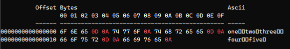 In the result, the new line characters are now highlighted, which makes it easier, for example, to spot DOS or Unix line endings: