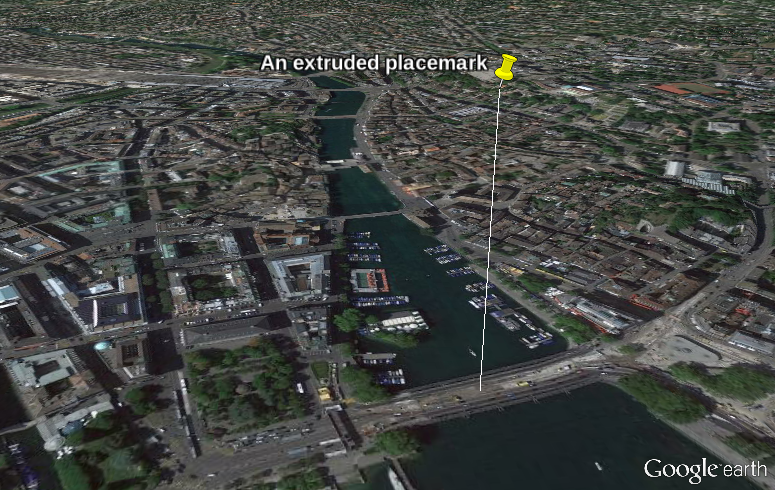 An extruded placemark