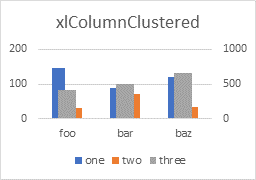ser_2.values = array( 30, 71, 34) : ser_2.xValues = array("foo", "bar", "baz") : ser_2.name = "two"