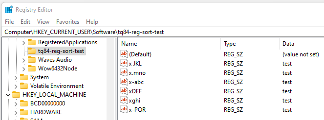 C:\> reg query HKCU\Software\tq84-reg-sort-test\