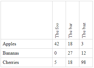 <tr><td>Apples </td><td>42</td><td>18</td><td> 3</td></tr>