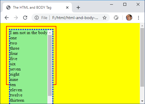 attribute controls the entire browser viewport. • Similarly, the scroll bars are not attached immeditatly to the right of the html
