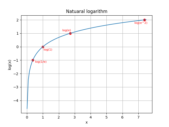 mark_coord( 1/np.e , 'log(1/e)', ( 22, -7))